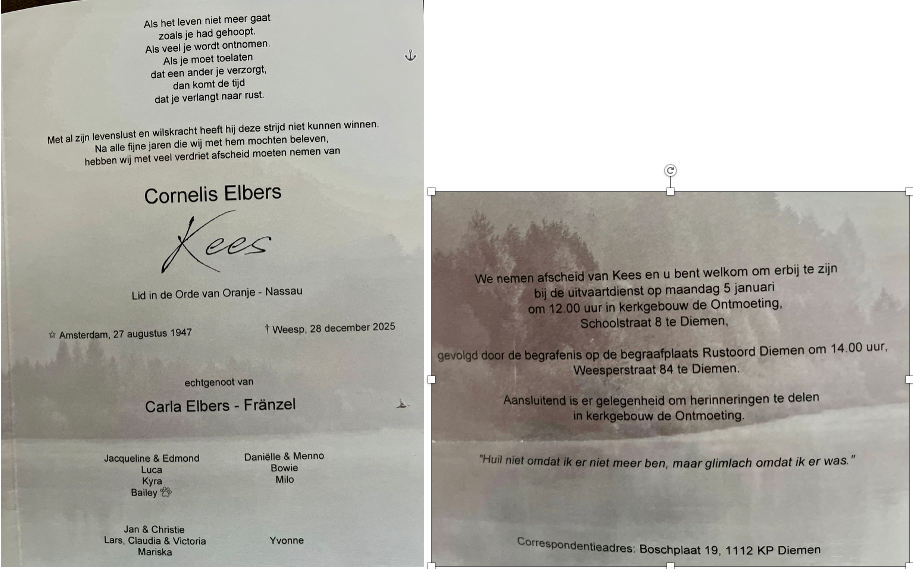 Kees was lid van verdienste en is onder meer voor zijn vrijwilligerswerk bij ATVD onderscheiden door de Koning.