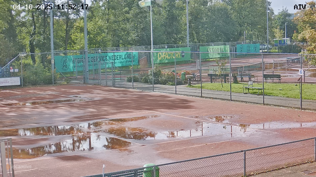 We sluiten de bar voor vandaag. De banen zijn doorweekt en er komt nog meer regen.